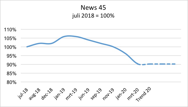 'Kranten worden dunner en de weekbladen raken aan het infuus. Het effect is dat de afzet en productie van papierfabrieken daalt. Nu kampt de papierindustrie al een paar jaar met krimp. De afzet van krantenpapier is in 2019 met circa 10% teruggevallen ten opzichte van 2018. Dat geldt ook voor LWC. Voor SC papier en verbeterd krantenpapier was dat circa 6% tot 8%. Deze trend heeft zich vertaald in dalende prijzen voor 2020. Uit onderzoek van de Amerikaanse Group M blijkt dat als gevolg van de oprukkende digitalisering en internet de advertentievolumes jaarlijks met circa 5% blijven dalen. En daar komt het corona-effect nog bovenop.'